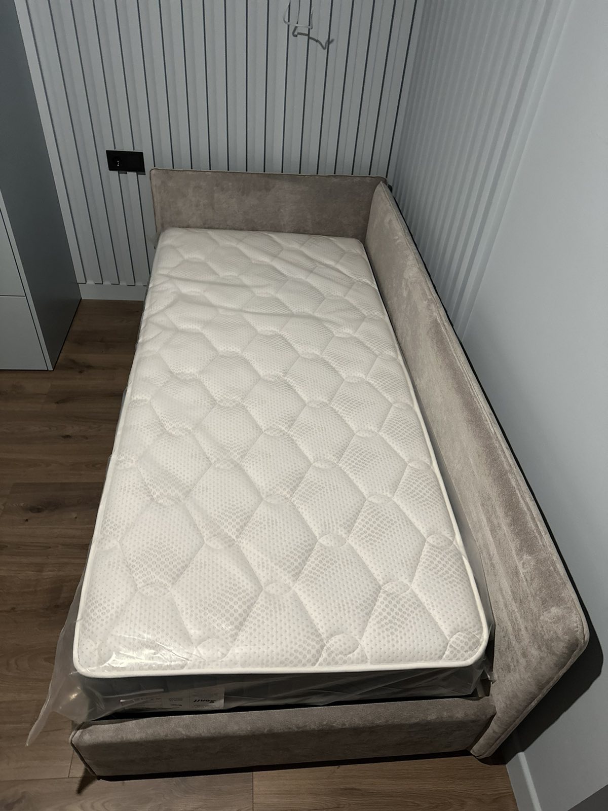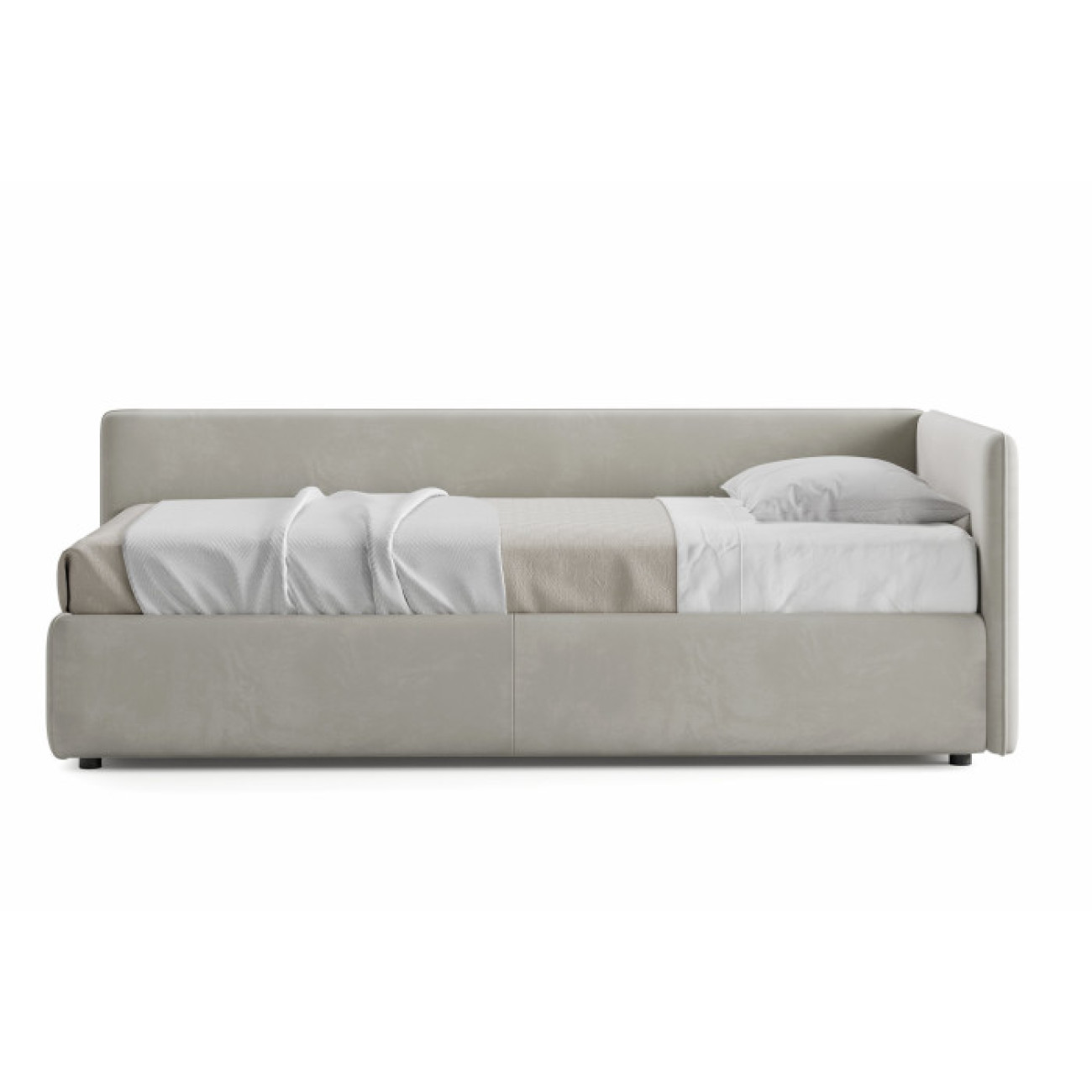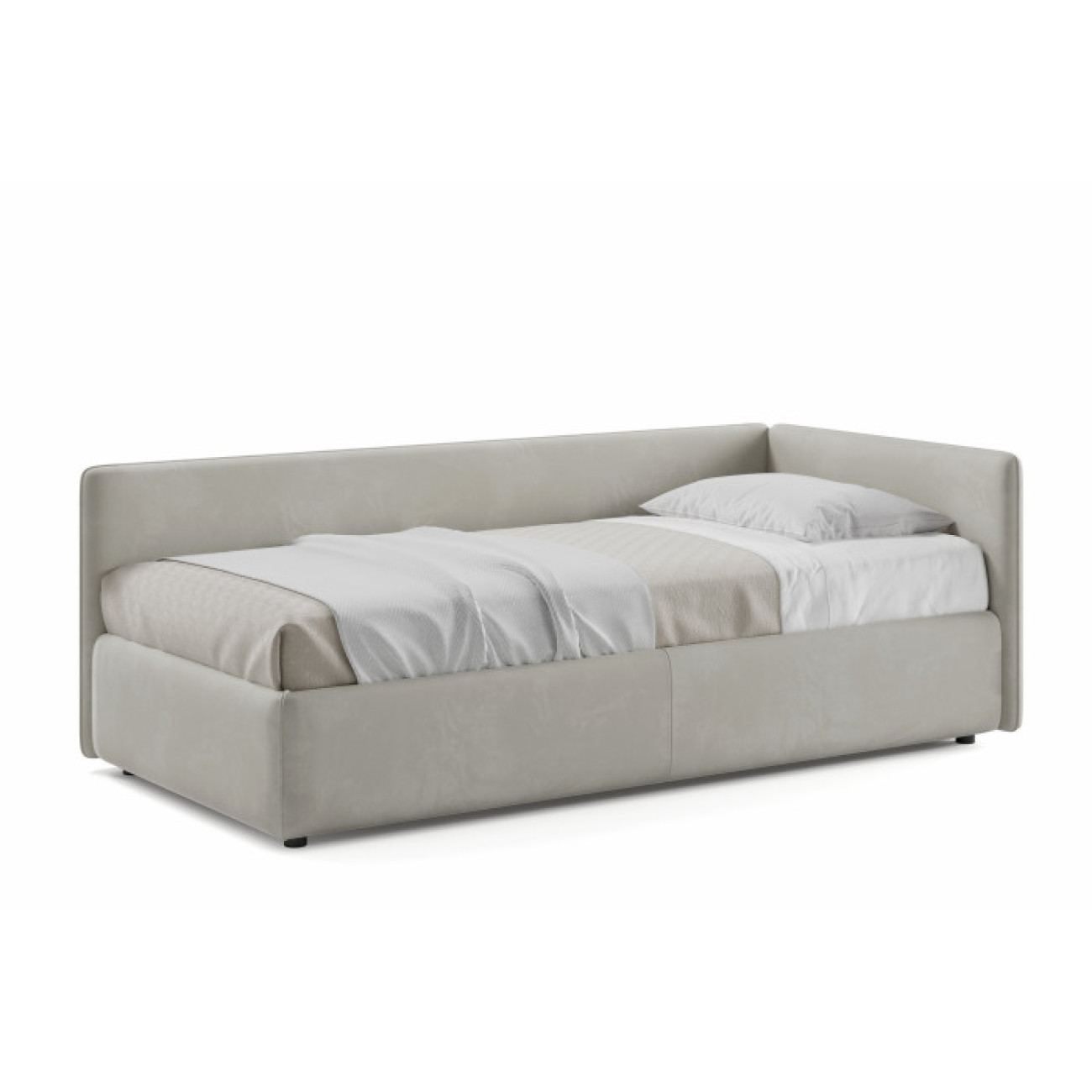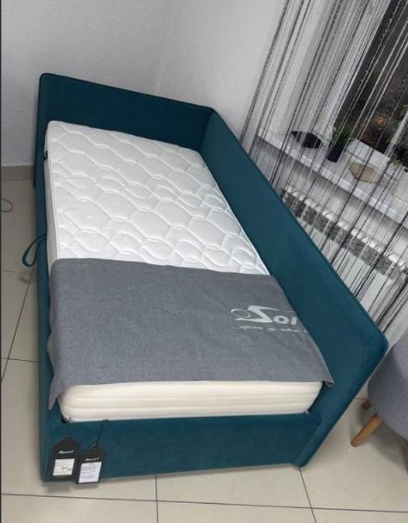• Мягкая кровать-кушетка c подъемным механизмом и нишей для хранения. Каркас из ДСП/сосновый брус.