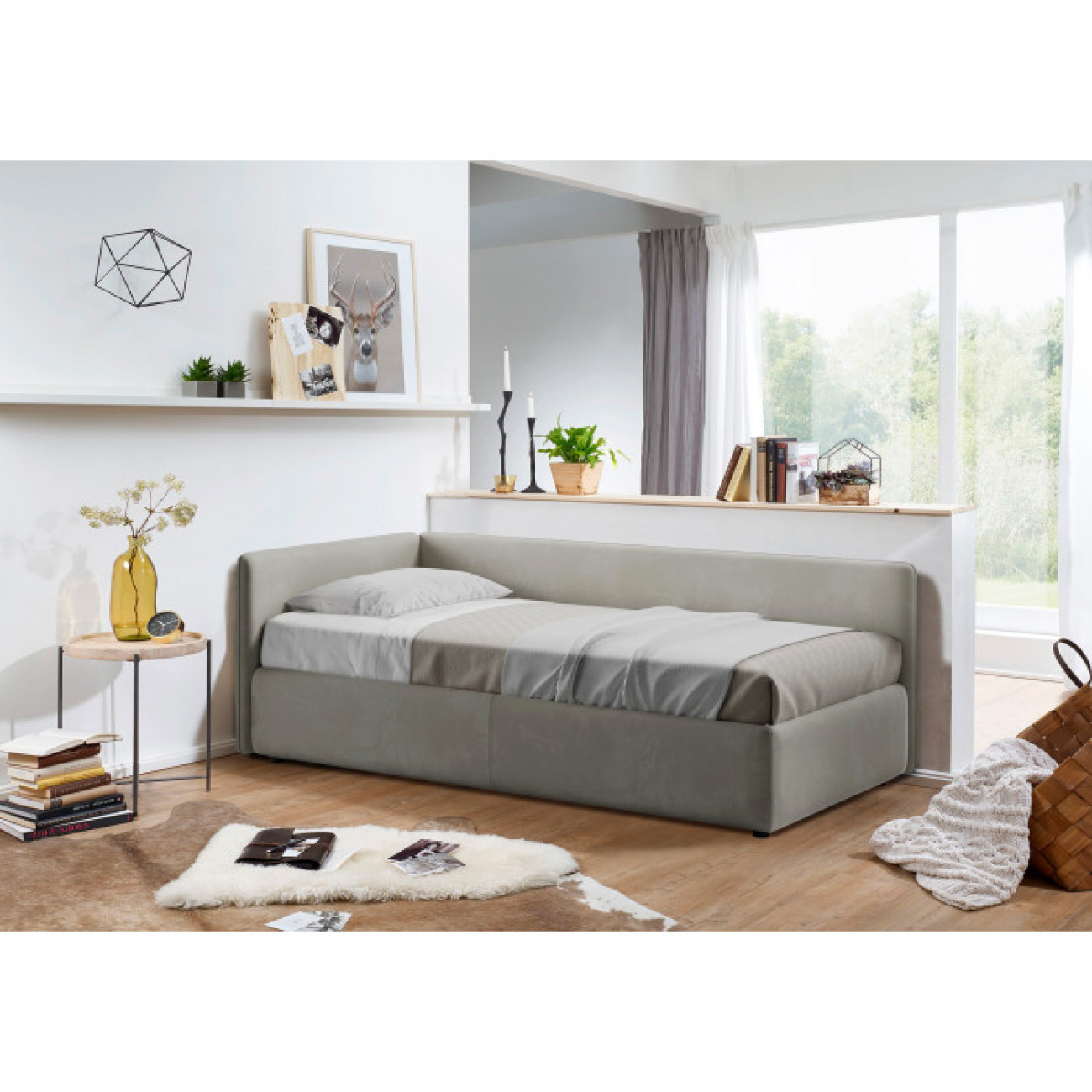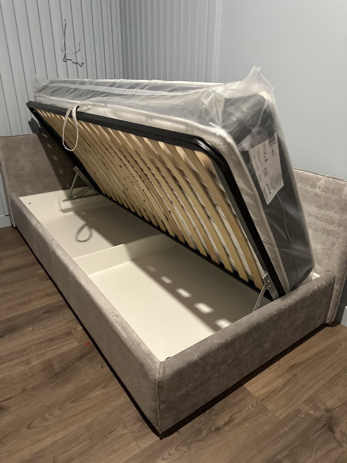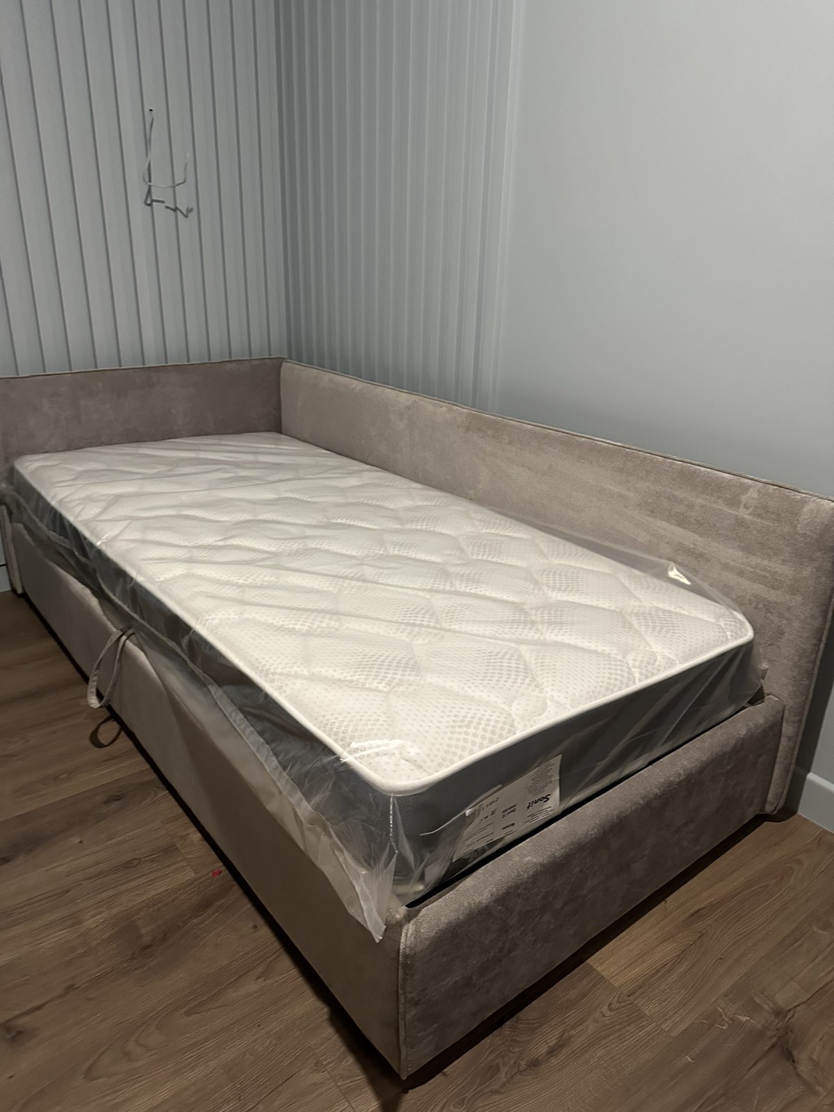 • Мягкая кровать-кушетка c подъемным механизмом и нишей для хранения. Каркас из ДСП/сосновый брус.